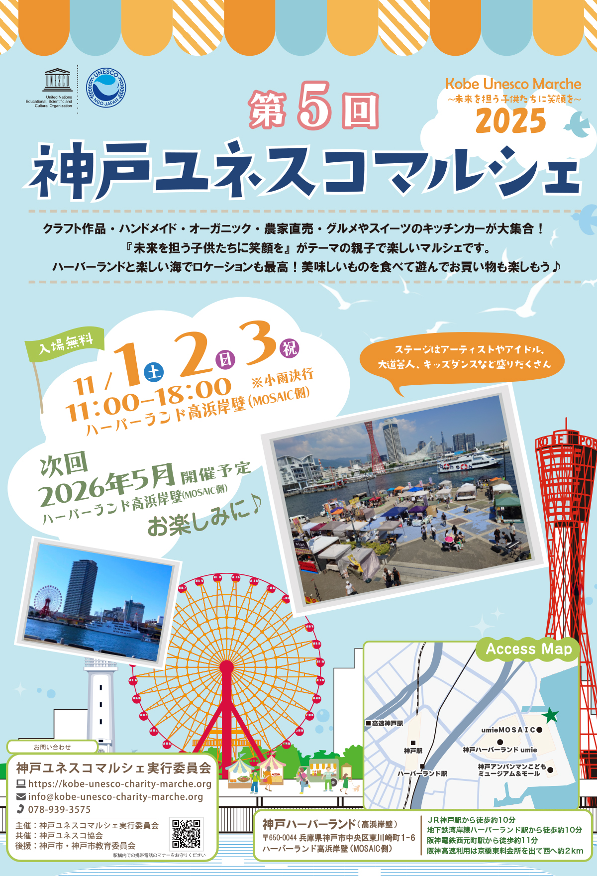 神戸ユネスコマルシェは『未来を担う子供たちに笑顔を』がテーマの親子で楽しいマルシェです。